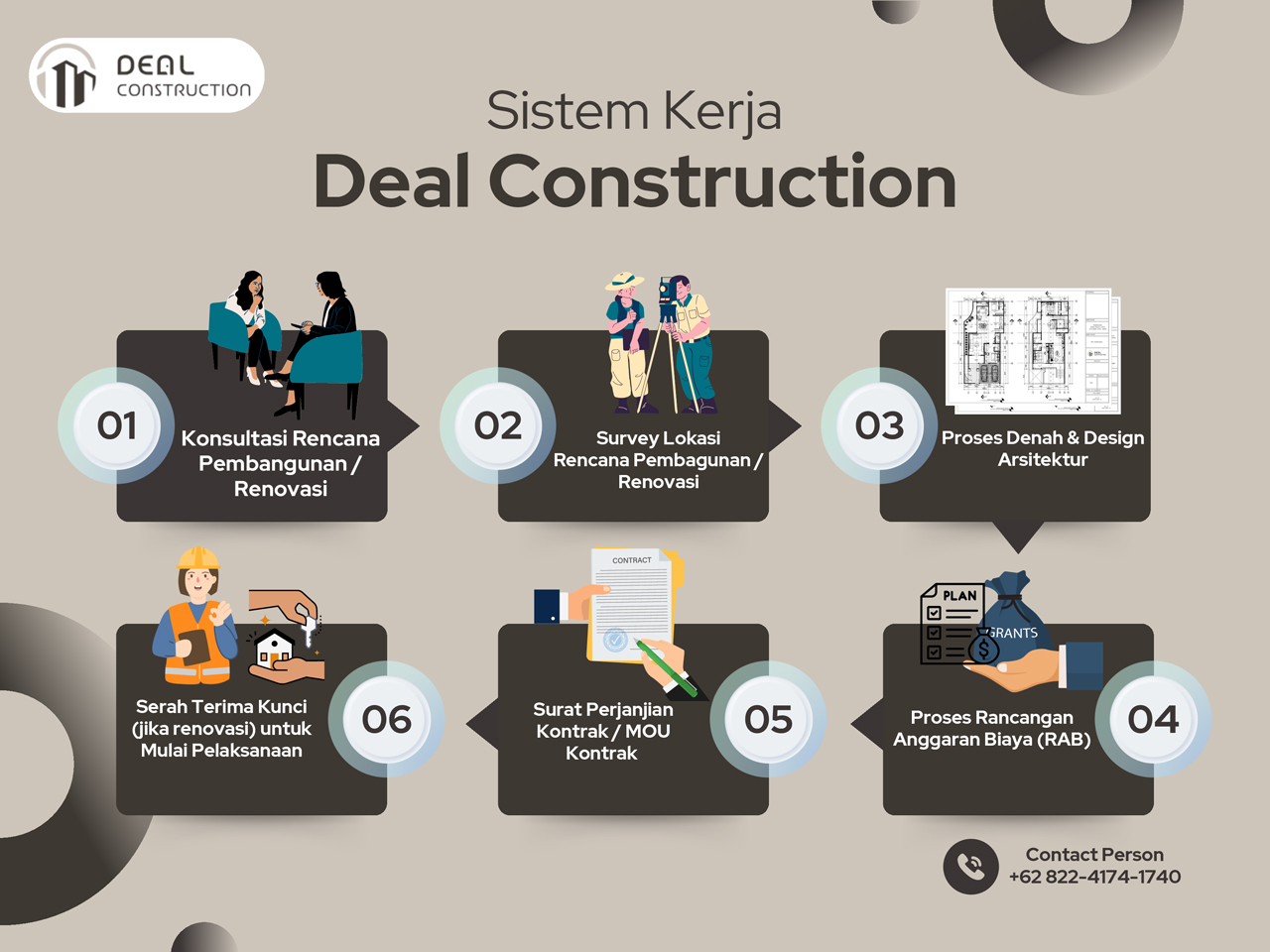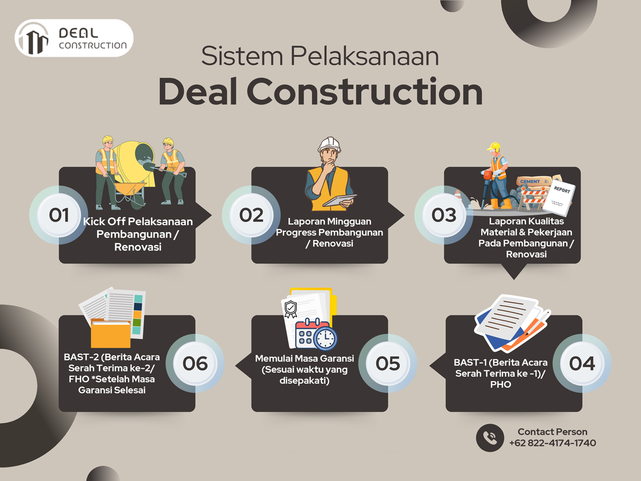 Deal Construction adalah perusahaan konstruksi terkemuka yang bergerak di bidang Teknik Sipil, Layanan Arsitektur, Desain Interior, dan Konstruksi Bangunan Low-rise. Kami selalu berada di garis depan dalam menghadirkan proyek-proyek berkualitas tinggi, berkelanjutan, dan inovatif yang memenuhi berbagai kebutuhan klien kami. Tim profesional yang terampil dan ahli dibidangnya memastikan setiap proyek diselesaikan dengan standar kualitas, keselamatan, dan efisiensi yang tinggi.